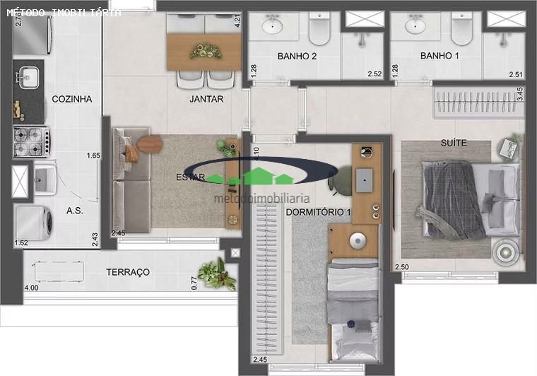 03/2029, o imóvel surpreende pela integração dos ambientes sociais: sala de estar com circulação fluida, cozinha prática e área de serviço funcional. Com dois dormitórios — sendo um deles suíte — e dois banheiros bem distribuídos, cada centímetro reflete o cuidado com acabamentos modernos e soluções que privilegiam conforto e privacidade.