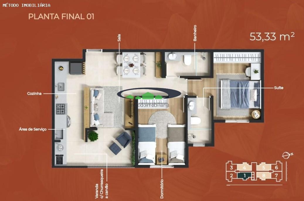 A sala de estar se integra harmoniosamente com a varanda que possui churrasqueira a carvão, excelente cozinha e à área de serviço, criando um layout moderno e versátil para receber amigos e familiares. Os dois banheiros trazem acabamentos sóbrios que facilitam a limpeza, enquanto a vaga de garagem privativa assegura conveniência diária e paz de espírito. Este projeto é ideal para casais jovens que sonham com independência ou para investidores em busca de return garantido em região consolidada.