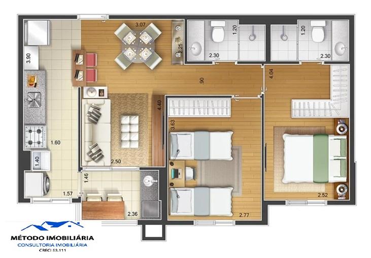 Apto de 3 dormitórios. sendo 1 suíte. Sala dois ambiente com sacada gourmet. Cozinha. Lavanderia com acesso a sacada. 2 vagas de garagem...